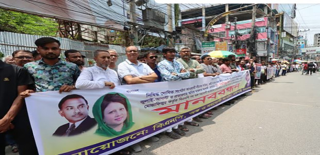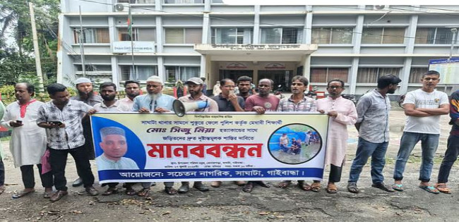 গাইবান্ধায় কলেজছাত্র সিজু হত্যার বিচারের দাবিতে মানববন্ধন