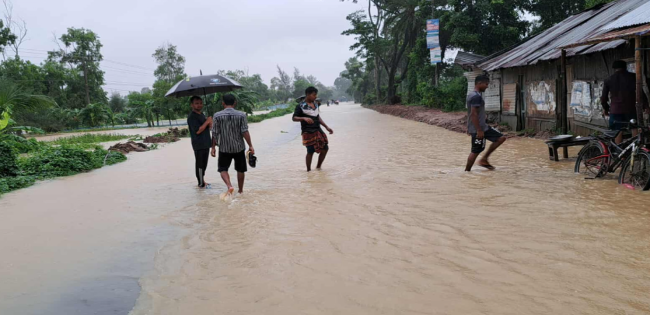 বাঁধ ভেঙে ফেনীর ২০ গ্রাম প্লাবিত, পরশুরাম সড়কে যান চলাচল বন্ধ