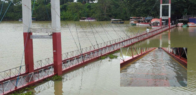 ডুবে গেছে রাঙ্গামাটির ঝুলন্ত সেতু, পর্যটক ভ্রমণে নিষেধাজ্ঞা