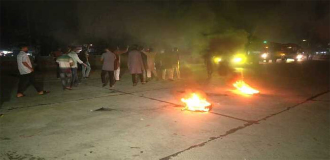 নুরের ওপর হামলার প্রতিবাদে বগুড়ায় মহাসড়কে টায়ার জ্বালিয়ে বিক্ষোভ
